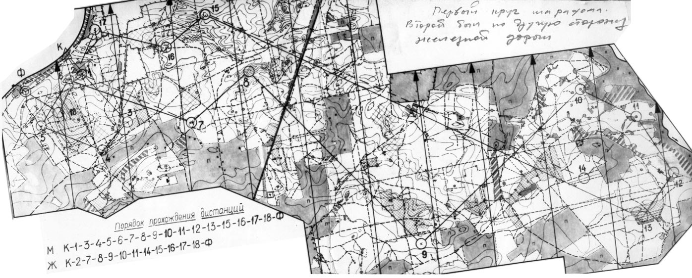 На карту впечатаны мужская женская дистанции , а на чистом поле указан порядок прохождения.