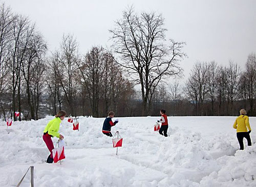 Зима. У нас в Гродно также, как и по всей Республике, куча снега, глубина которого местами достигает 40-50 см. Вот этот фактор мы и решили применить в своих тренировках. Бег по заснеженному грунту - это конечно хорошо. А мы пошли дальше! Ориент-шоу в лабиринте из снега - вот наше ноу-хау!