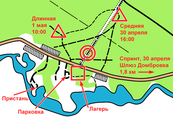 Между центром соревнований и районом соревнований пролегает автодорога с неинтенсивным, но опасным движением. Будьте осторожны.