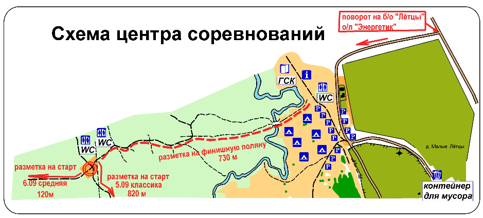 Расстояние от центра соревнований до финишной поляны | Расстояние от финишной поляны до старта | Расстояние от центра соревнований до старта | |