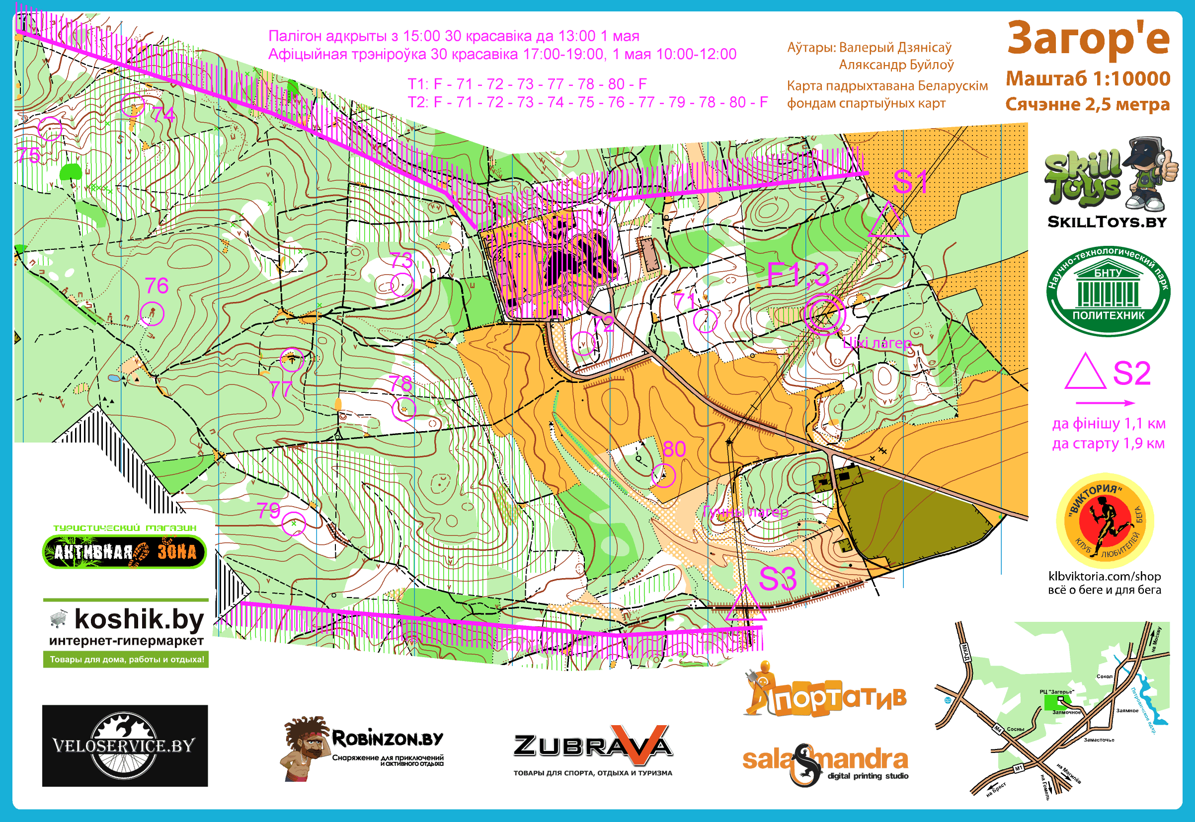 Авторы: Виктор Кирьянов, Александр Ефименко. Масштаб 1:10000 (для МТВО – 1:10000). Сечение рельефа 2,5 метра. Подготовлена в 2014-2015 годах.