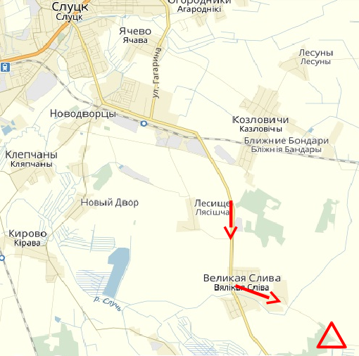 Поворот в д.Великая Слива на д.Волоты перед магазином.