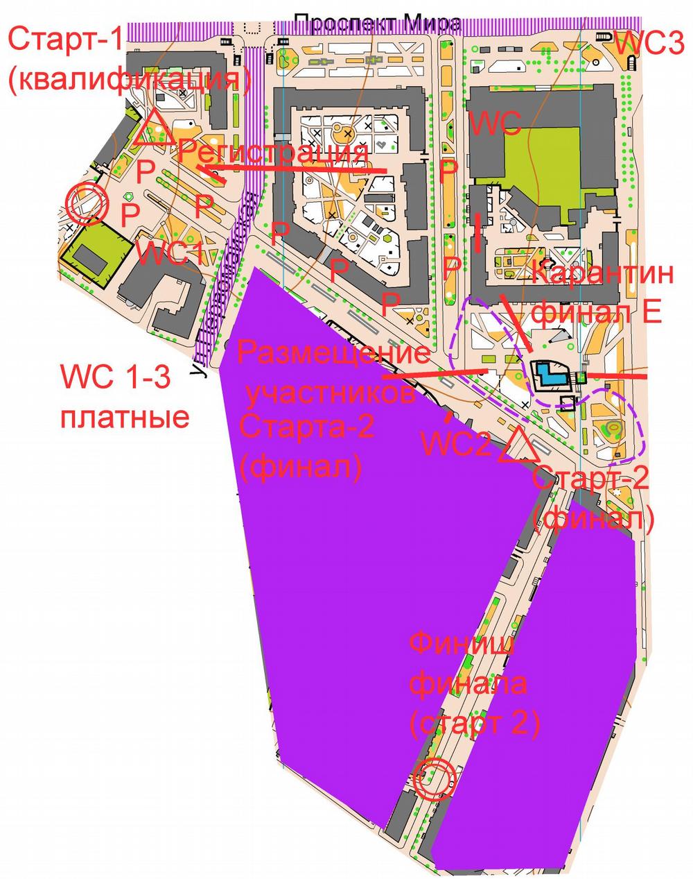 При движении участников между стартами 1 и 2 соблюдайте правила дорожного движения. Размещение участников квалификации в зоне регистрации.