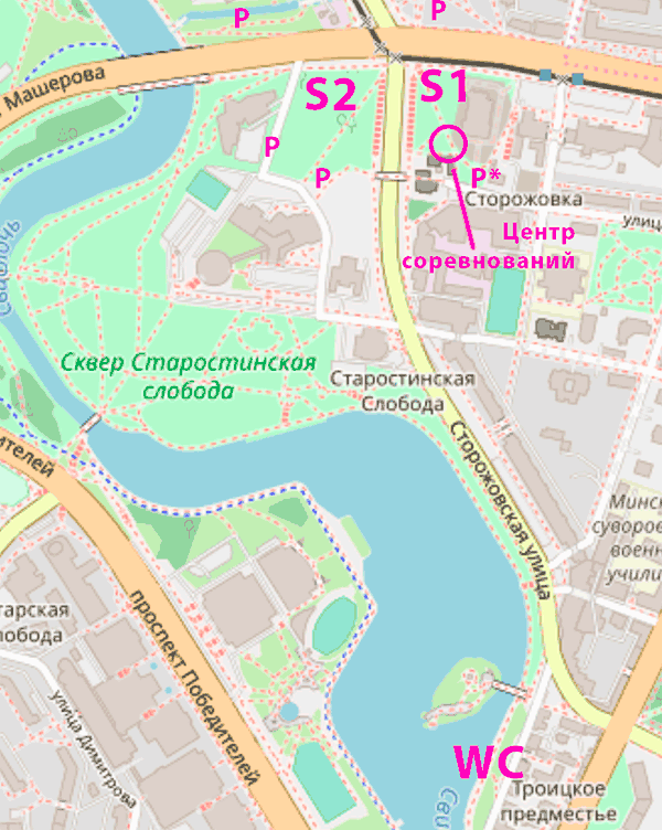 GPS-координаты центра соревнований: 53.9168, 27.5541, Google Maps