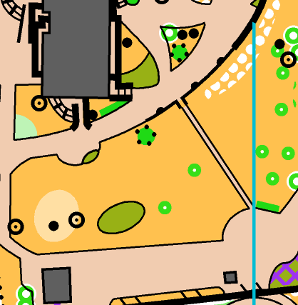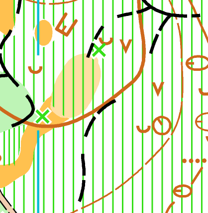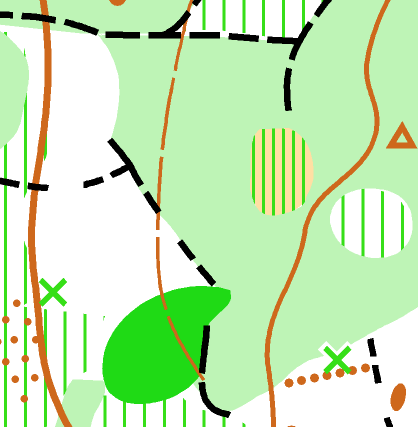Лес частично просматривается, растительность от средней до плохой проходимости по всей площади карты.