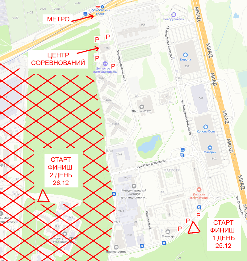 Район соревнований ограничен улицами Огинского, Скорины, МКАД.