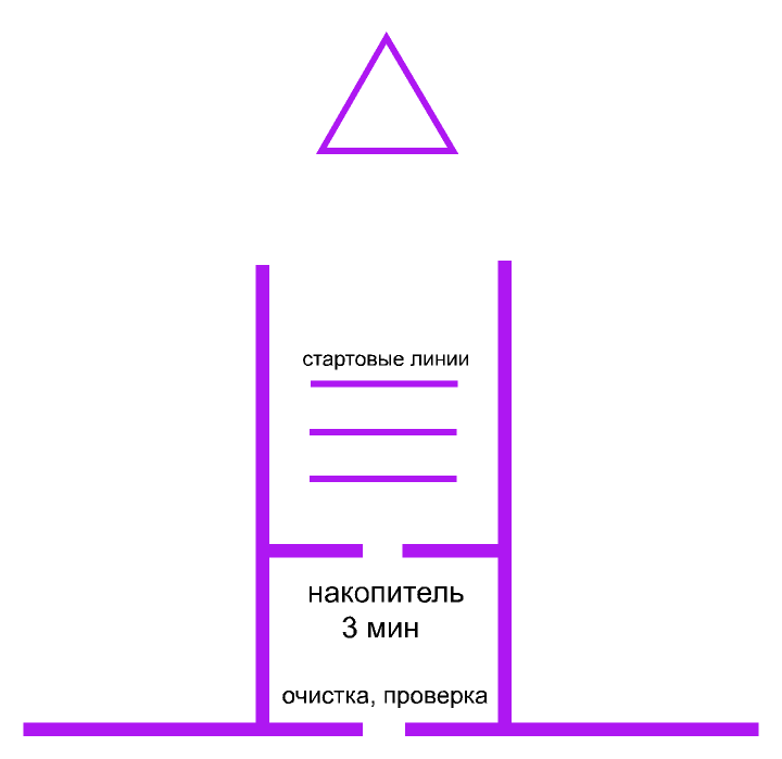 За 6 минут до старта группы начинается пропуск участников в накопитель.