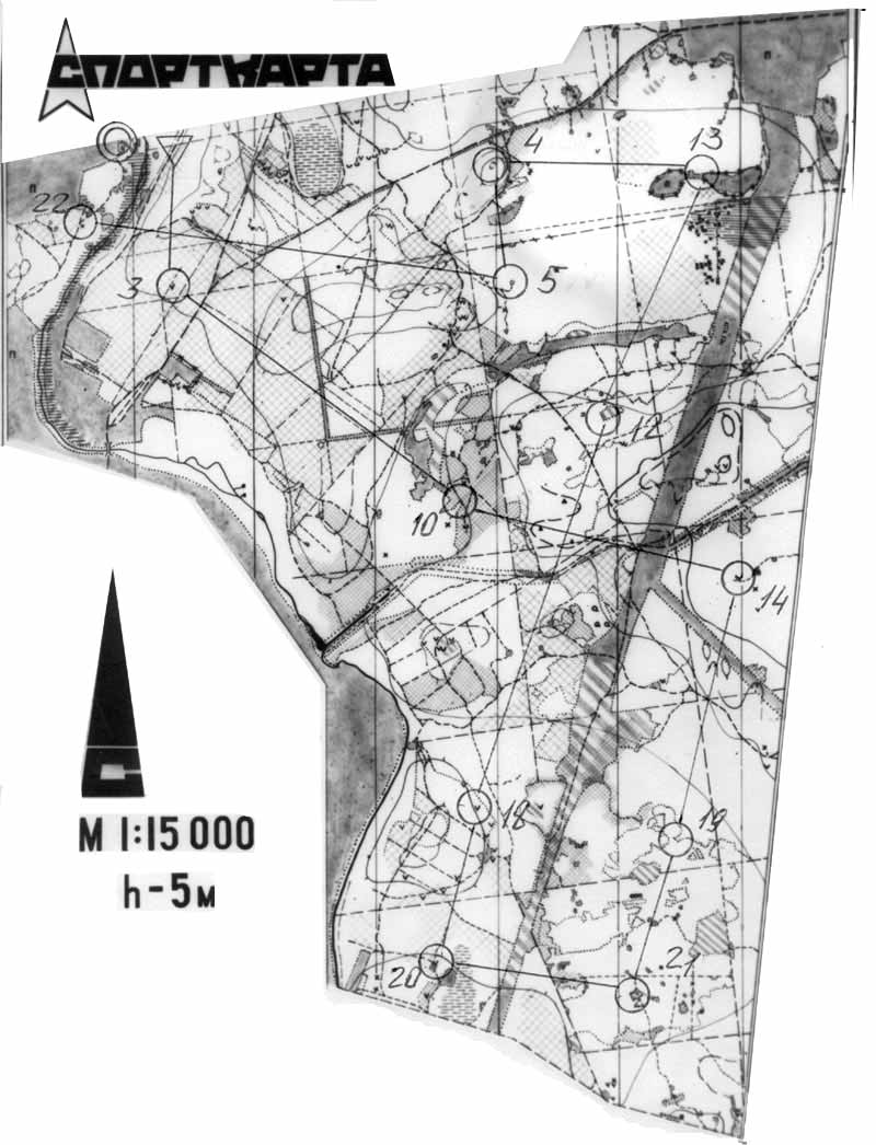 Следующая карта volma64.jpg (54,1 КБ) датирована 1964 годом. На ней нанесена дистанция тренировки 21 июня, целью которой являлось выяснение того, насколько участники понимают систему расстановки пикетов.