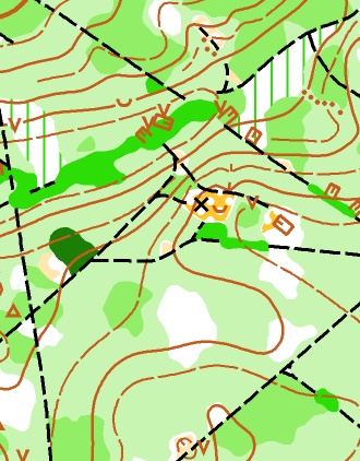 Местность: Лес, в основном, еловый, различной пробегаемости. Пробегаемость полей по кромке вдоль леса хорошая (соответствует пробегаемости лесной тропинки). Дорожная сеть развита хорошо. Слабопересеченная. Высота на склоне до 10 метров.