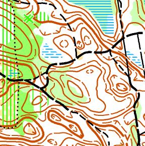 Местность в оба дня соревнований сильно пересеченная с перепадом на склоне до 25 метров, проходимость преимущественно средняя и плохая, имеется развитая сеть дорог и просек. Масштаб карты в оба дня: 1:10 000 (1:7 500), сечение рельефа 2,5 метра. Автор: Бригинец К.