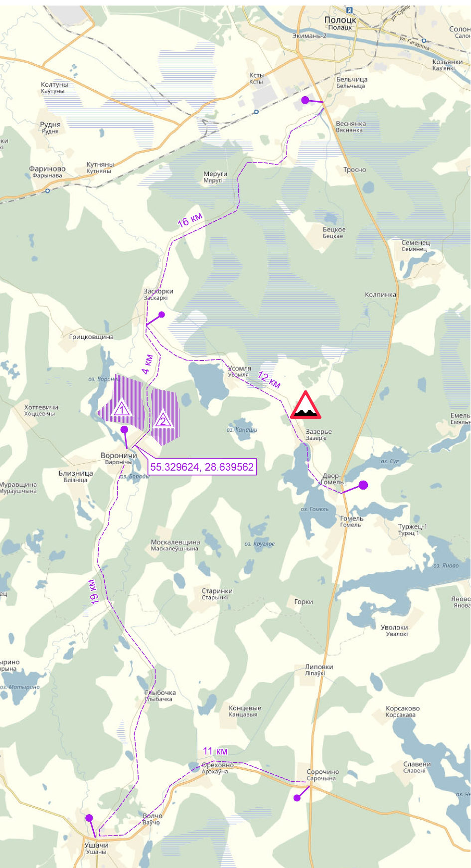 11.00 Командные соревнования (эстафета 3 этапа, группы МЖ Е, В). Место старта - д.Вороничи. (координаты GPS: 55.329624, 28.639562)
