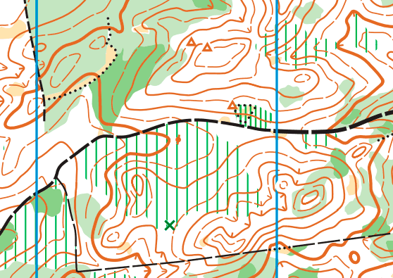 Около пунктов 58 и 59 на длинной дистанции ведется не сплошная рубка леса. Старые вырубки показаны в карте, новые показаны частично, их контур может меняться. Расположение вырубок не влияет на процесс ориентирования.