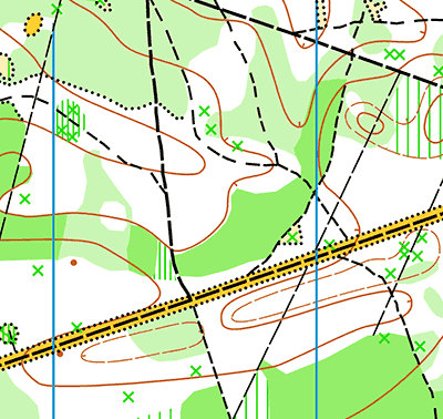 среднепересеченная, лес хорошей и средней проходимости с большим количеством подлесков и буреломов. Сеть дорог и просек плотная.