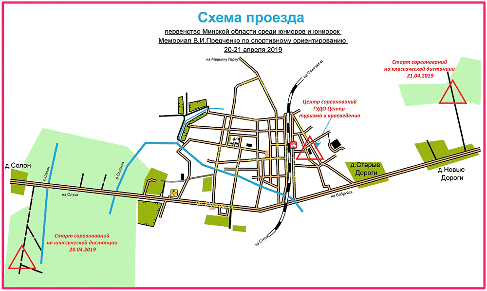 Соревнования проводятся: в 12 км. от г.Старые Дороги по трассе Р43 в направлении г.Слуцка, у д.Солон. GPS координаты: 53°01'29.0"N 28°07'01.3"E, Google Maps