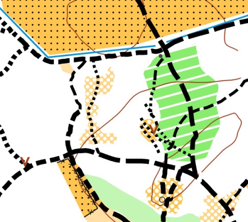 Гравийная дорога с малоинтенсивным движением в западной и центральной части карты. Возможное наличие бытового мусора в местах отдыха.