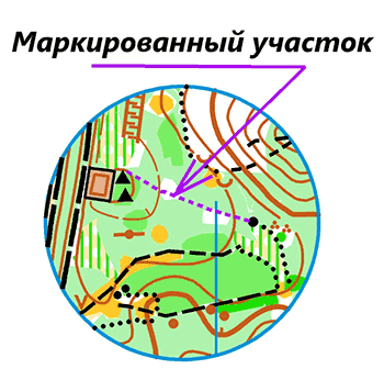 ПРИМЕЧАНИЕ: для упрощения ориентирования в младших группах на переходе к первому КП применен маркированный участок из висящей красно-белой ленты, при необходимости им можно воспользоваться.