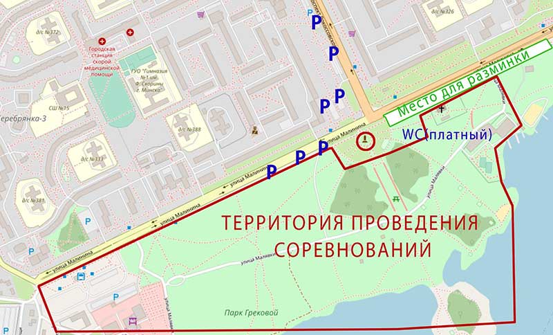На личном транспорте рекомендуется парковаться вдоль улицы Малинина и проходить к центру соревнований пешком. Парковать машины с соблюдением ПДД. Подробнее смотрите в схеме.