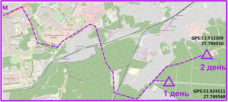 В случае потери ориентировки в первый день выходит на запад к автодороге Колодищи - Глебковка или на юг до посёлка Колодищи-2. Во второй день выходит на север к автодороге Колодищи – Глебковка.