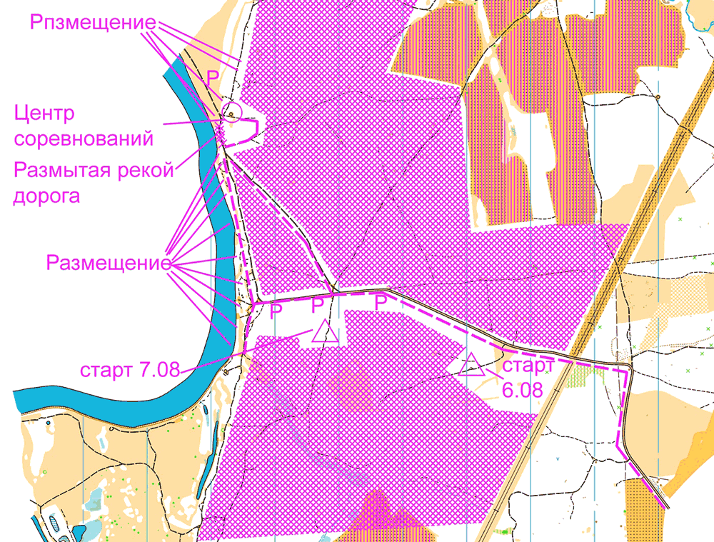 Район соревнований ограничен: на юге – поле и дорога Р43, на западе – р. Днепр, на востоке – д.Свержень, на севере – объездная дорога. Аварийный азимут на СЕВЕР или ВОСТОК.