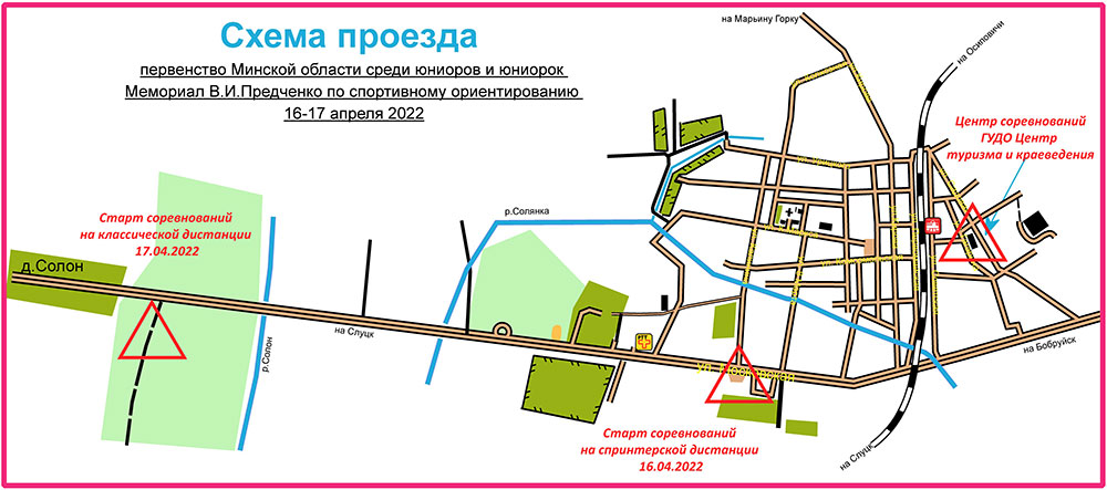 Соревнования проводятся: в 12 км. от г.Старые Дороги по трассе Р43 в направлении г.Слуцка. GPS координаты: 53°02'27.2"N 28°07'45.9"E